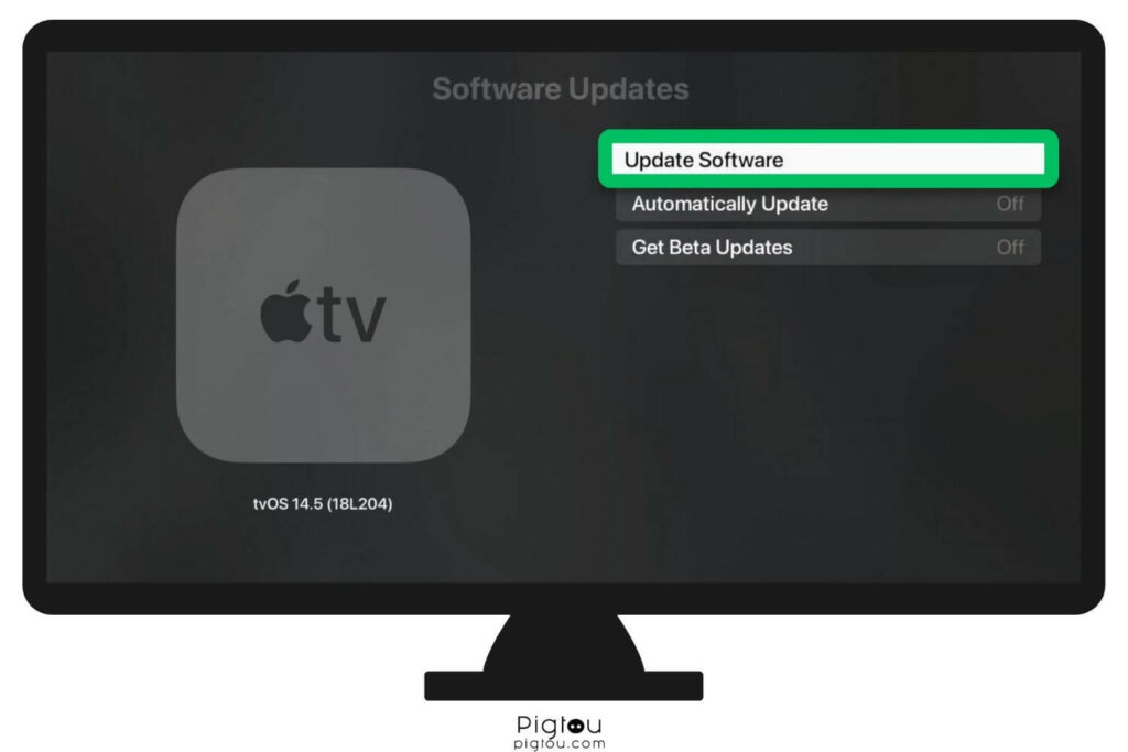 更新 Apple TV 上的软件/图片:Pigtou.com