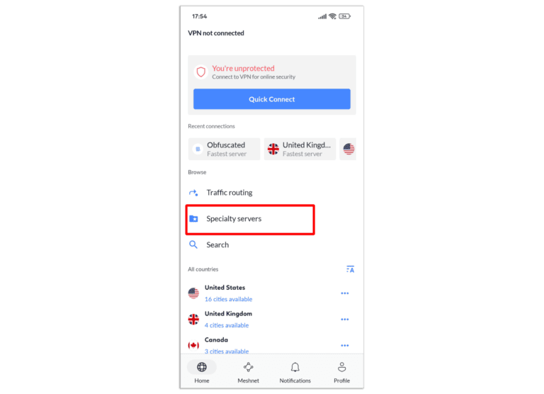 因此,要在土库曼斯坦使用 NordVPN 而不被检测到,请在前往土库曼斯坦之前安装应用程序,并坚持使用混淆的双 VPN 服务器。