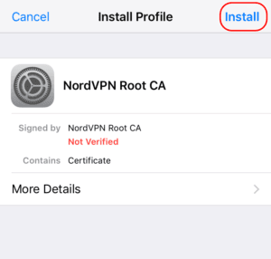 - 启动 Safari 浏览器并下载NordVPN IKEv2证书直接发送到您的 iPhone。