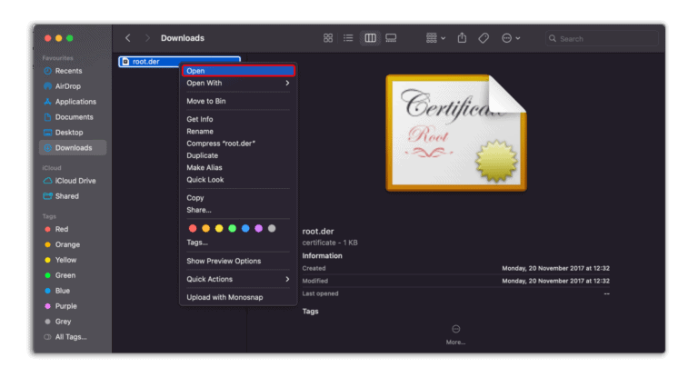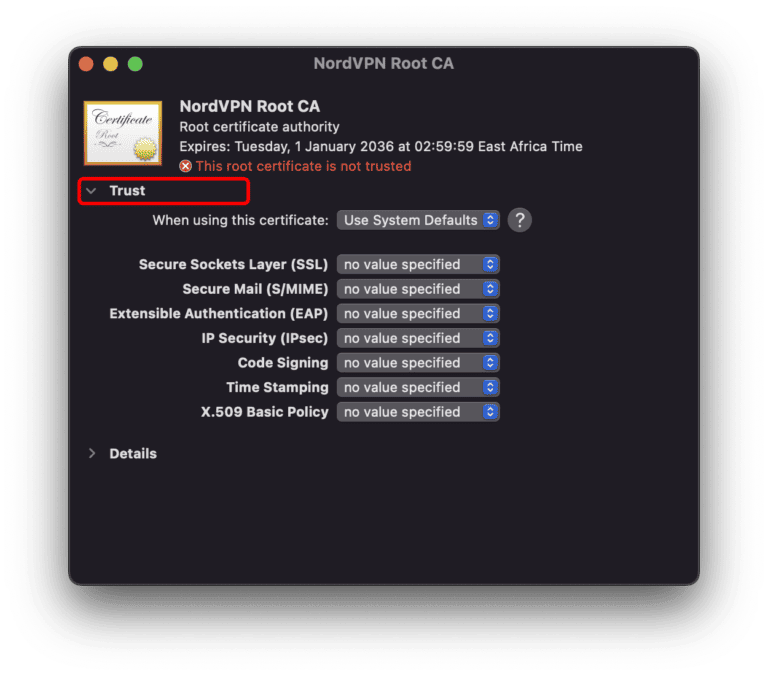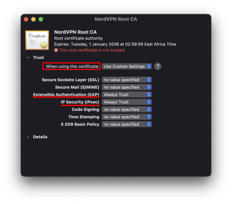 - 下载NordVPN IKEv2从此证书到您的Mac关联。