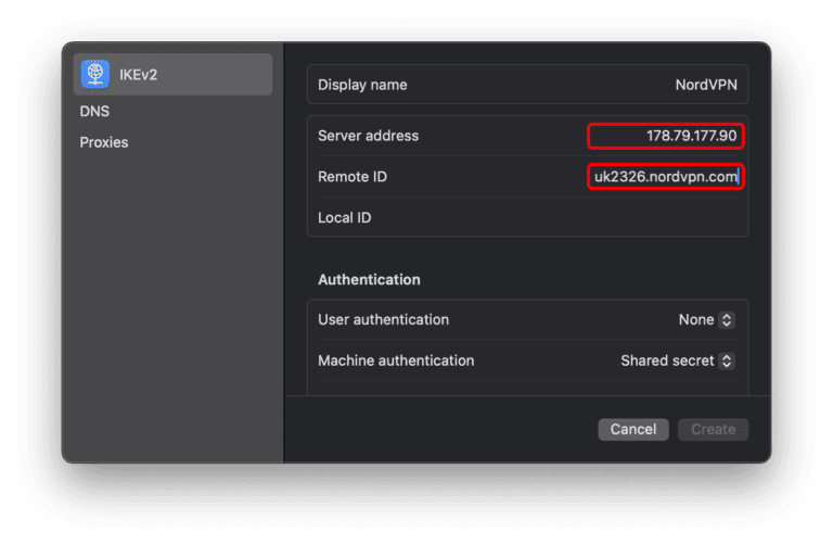 - 在显示名称, 类型 ”北方VPN”。在服务器地址和远程ID,输入上面屏幕截图中的信息。