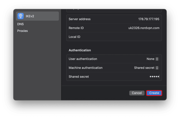 - 输入您的共享秘密,在本例中是您的 macOS 密码。保留其余选项不变,然后点击“创造”。