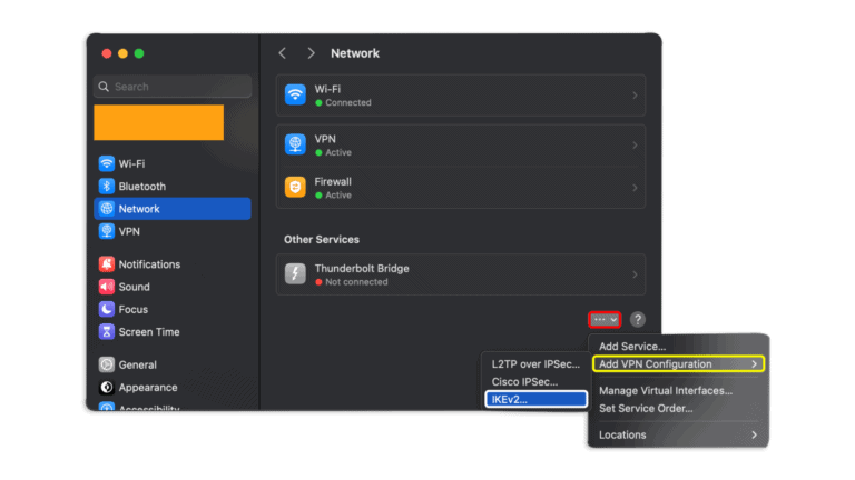 - 在出现的小窗口的右下角,点击三点符号 (……)。然后,选择“添加VPN配置”并选择“IKEv2”。