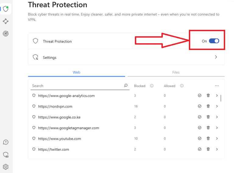 威胁防护(以前称为 CyberSec)是一种安全功能NordVPN 应用程序防止用户访问恶意网站、广告、跟踪器和程序。