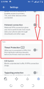 - 接下来,切换威胁防护按钮“在”。