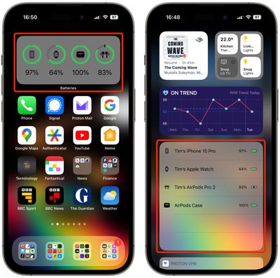 您还可以使用“电池”小部件检查 AirPods 的充电状态。可以通过点击屏幕底部的编辑按钮将其添加到您的 iPhone 的今日视图(通过在锁定屏幕或主屏幕应用程序的第一个屏幕上向右滑动来访问)。或者,您可以将电池小部件添加到主屏幕。