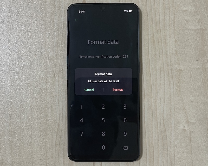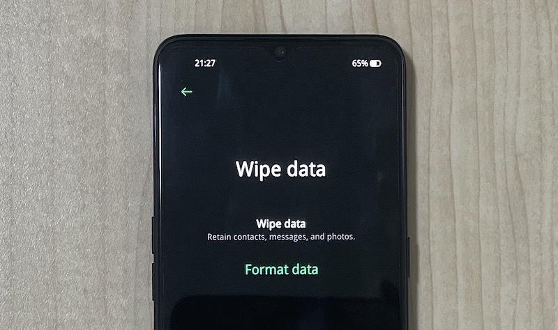 步骤3:使用音量按钮选择“擦除数据”>“格式化数据”,然后使用电源按钮确认。