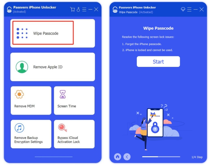 - Passvers iPhone Unlocker 是否会删除激活锁?