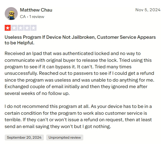 Passvers iPhone Unlocker 并不是一款完美的解锁工具,Trustpilot 中的用户评价褒贬不一。以下是 Passvers iPhone Unlocker 的一些正面和负面评论。