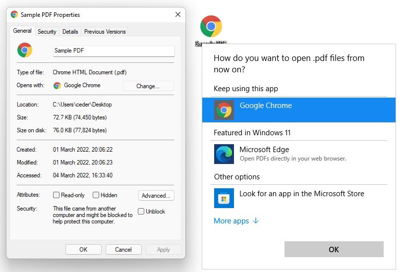 将文件转换为 PDF 文件或将 PDF 文件下载到系统后,您过去会看到 PDF 文件的 Adobe Reader 图标,现在 Google Chrome 图标已取代该图标,文件将在浏览器中打开。您可以通过右键单击该图标并选择来快速更改此设置特性。