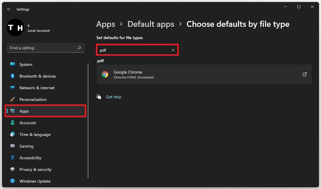 搜索 PDF,您应该会看到当前选择打开的默认应用程序PDF 文件在您的系统上。单击它,然后您可以选择正确的应用程序。