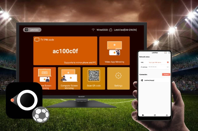 - 在您的手机上,单击星号图标手机右上角并输入密码显示在您的电视上。最后,按M按钮镜像。镜像后,启动手机上的世界杯应用程序即可在电视上观看。