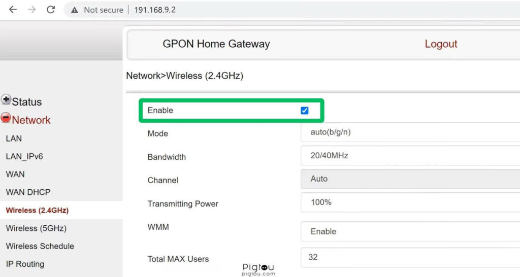 在路由器配置页面启用 2.4 GHz 频率/图片:Pigtou.com