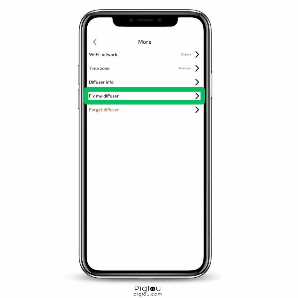 - 打开普拉应用程序然后单击您要重置的扩散器上方的三行
