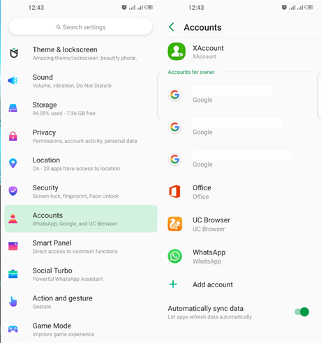 步骤 1. 首先,您必须确保包含联系人备份的 Google 帐户已添加到您的 Android 设备中。如果不是,请转到“设置”>“帐户”,然后点击“添加帐户”立即添加您的 Google 帐户。