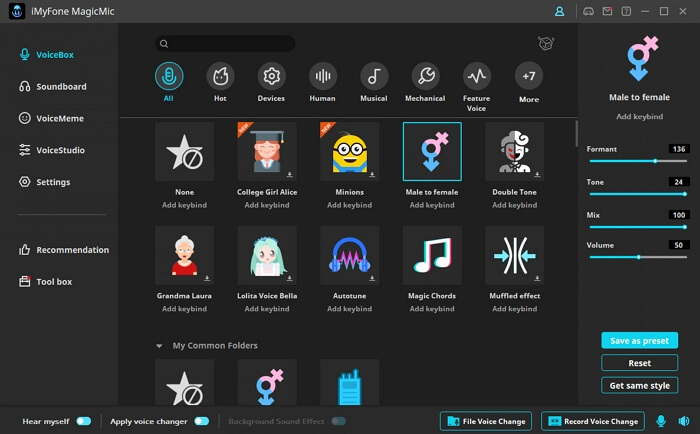 从创建在线角色到释放您的内心女士,魔术是您对女性语音改变者的动态应用。超过225多个音频过滤器和600多个音频效果的集合,以创建多功能在线人物。