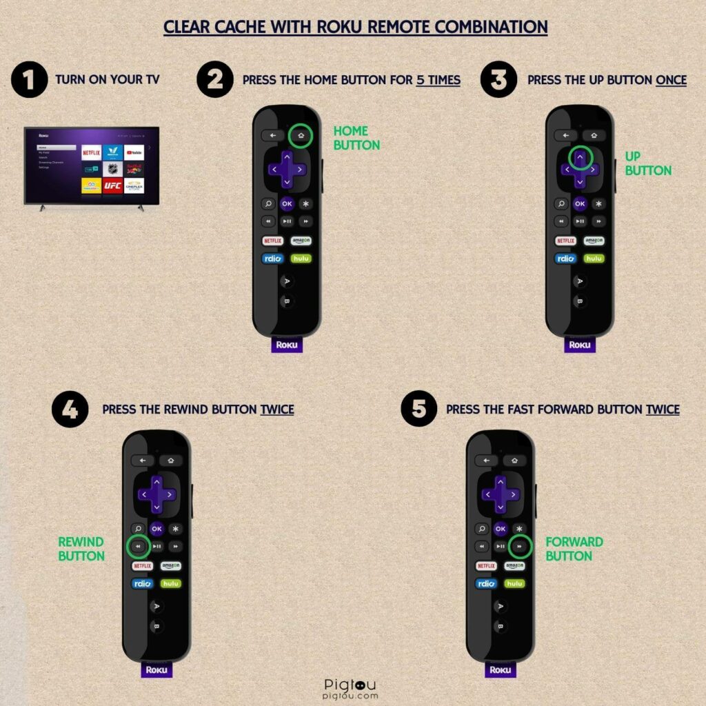 在 Roku 遥控器上输入组合键以清除缓存/图片:Pigtou.com
