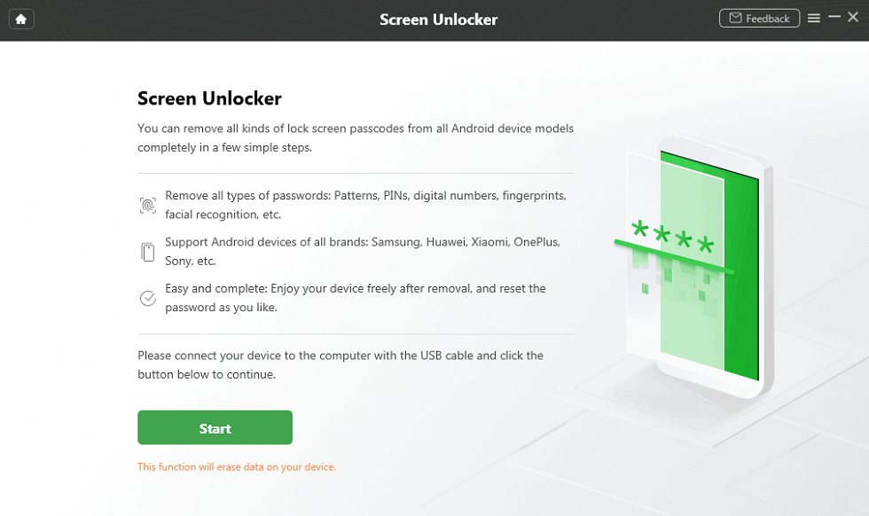 步骤2。连接锁定的三星,然后单击“开始”按钮。