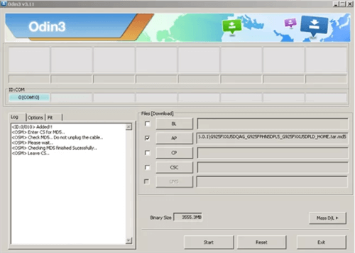 步骤 4. 将固件文件添加到 Odin 后,单击“开始”按钮开始刷新过程。