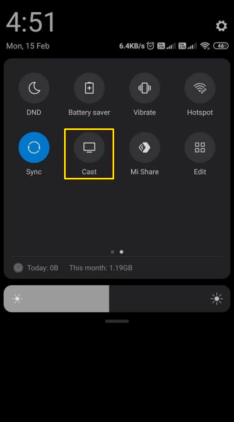 4. 现在,转到通知面板在您的 Android 设备上点击投掷或者智能视图图标。