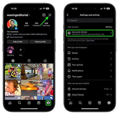- 点击轮廓右下角的图标,然后点击更多的(三行)图标位于您的个人资料右上角。