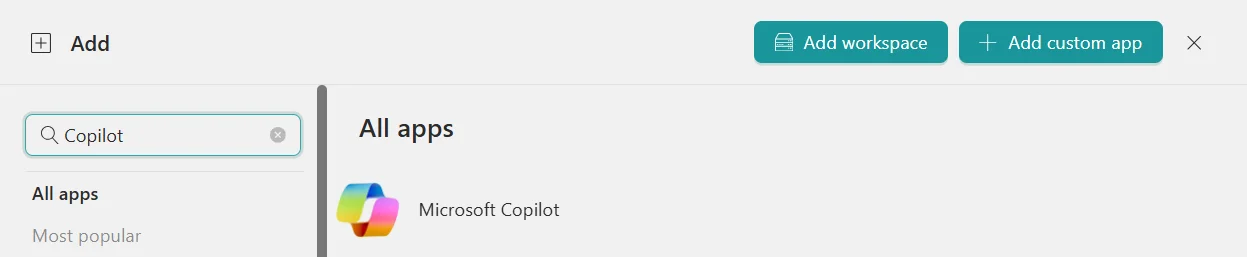 - 单击“添加应用程序或工作区”主选项卡或工作区中的按钮。