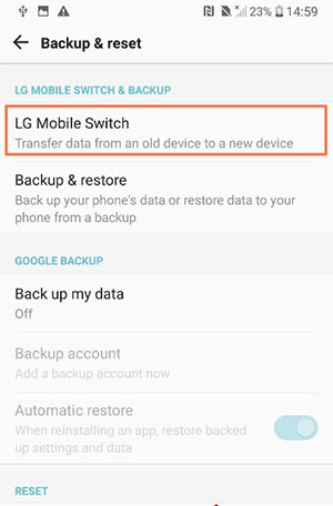 首先,当您遇到此类问题时,我们建议您检查源设备上是否有 LG Mobile Switch。您可能尚未在设备上安装该应用程序。以下是有关如何从设置面板检查是否有 LG Mobile Switch 的简单指南: