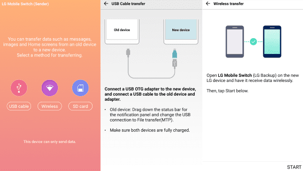 将数据从另一台 Android 设备或 iOS 传输到 LG 非常简单。在本节中,我们将演示如何做到这一点。下面将详细讨论上述两种传输模式: