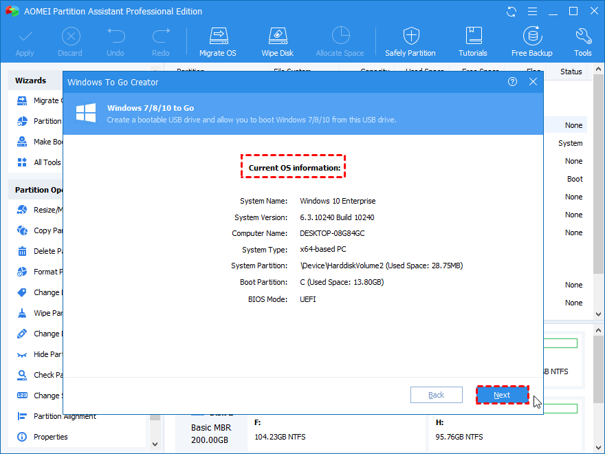 步骤3.为个人计算机选择“创建Windows To Go”,然后单击“下一步”。