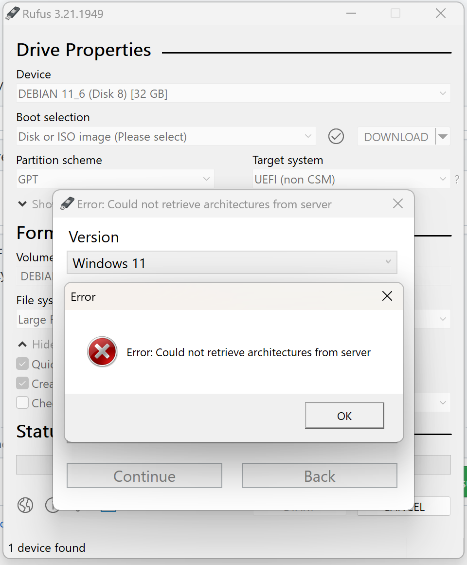 • 有限的支持:Rufus 是第三方工具,不提供 Microsoft 的官方支持。虽然它通常是可靠的,但如果您在可启动 USB 创建过程中遇到任何问题或错误,您可能需要从 Rufus 社区或论坛寻求帮助。