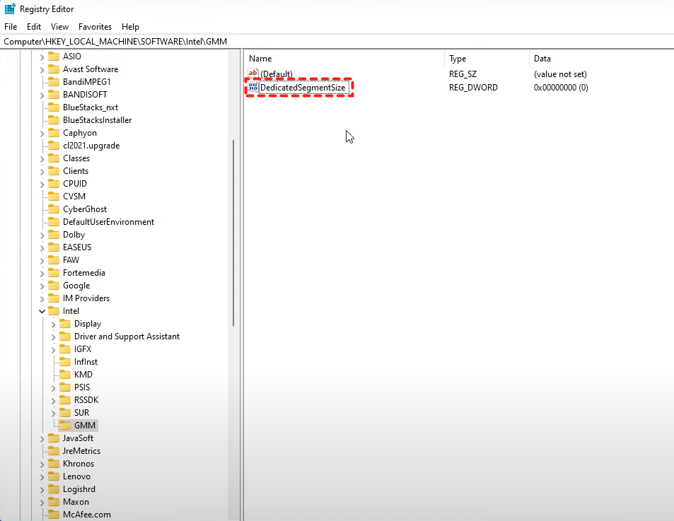 步骤 4:将其命名为“DedicatedSegmentSize”并为其分配一个与您想要的 GPU 的 VRAM 量相匹配的(十进制)值。