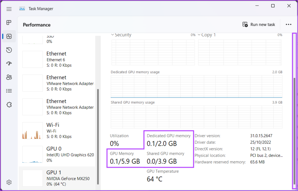 步骤 4:使用右侧滚动条向下滚动,您将发现以 GB 为单位列出的三个 VRAM 值。