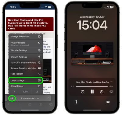 此方法的唯一区别是,除非您在 Siri 阅读时锁定设备,否则您不会在屏幕上看到媒体控制面板。如果该文章仍在 Safari 中打开,您可以通过点击暂停聆听选项取代了“监听页面”选项氨基酸弹出菜单。