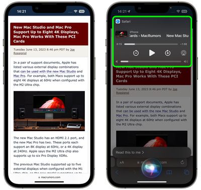 最后要注意的是,如果您想要读给您听的文章只是提要中的众多文章之一(例如 MacRumors.com 的首页),您需要点击查看相关的单篇文章。然后你可以做两件事之一。