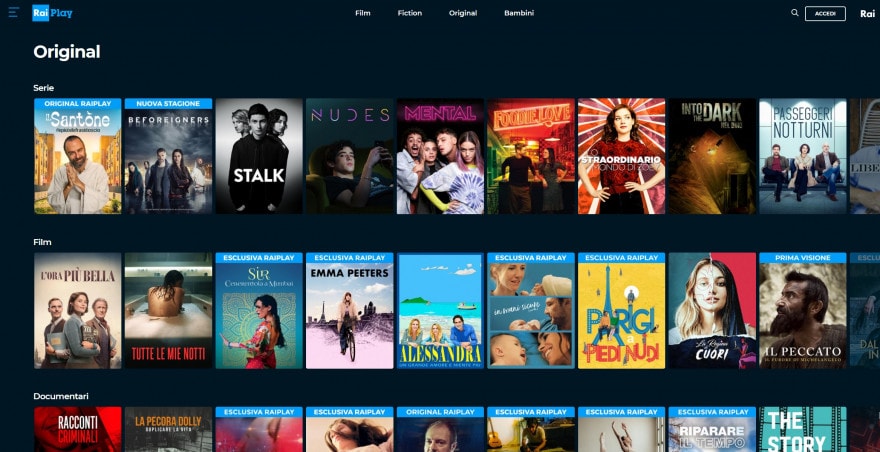 Rai 的流媒体平台提供直播 Rai Sport 和其他播出民族权利赛事的 Rai 频道(足球比赛、自行车比赛等,当 Rai 拥有权利时)。对于意大利的观众来说,这是一个值得信赖的合法来源。