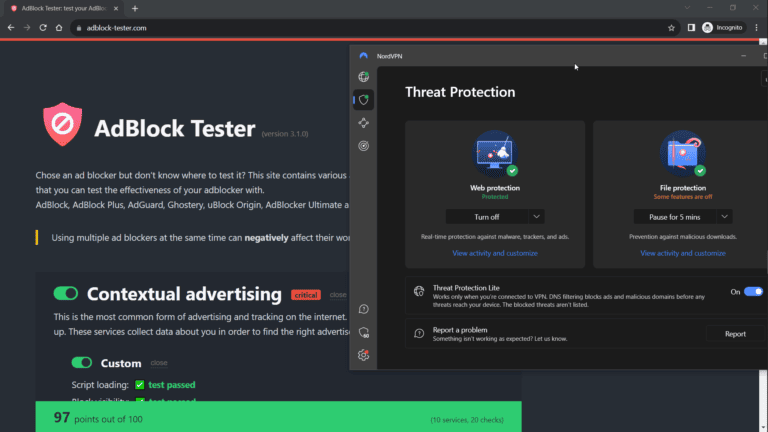 nordvpn的威胁保护保持与顶级CleanWeb 2.0相似的分数。