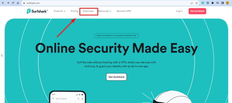 - 转到Surfshark网站,然后单击“下载。”