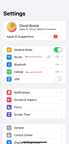 从主屏幕转到“设置”应用程序,然后选择“WLAN”选项卡以选择 Wi-Fi,或进入“蜂窝网络”选项以启用蜂窝数据。