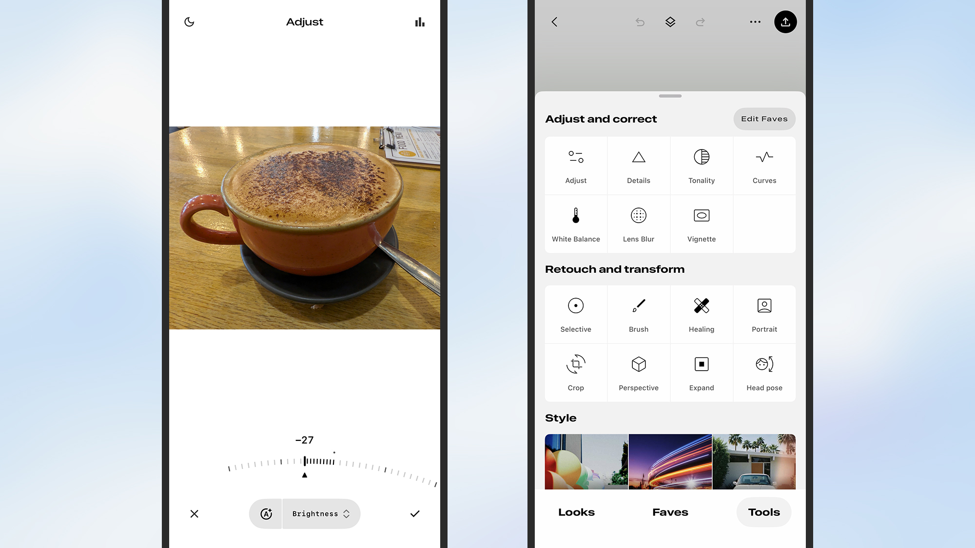 每个工具都易于使用,通常只需要点击或滑动,您就可以实时查看更改的应用情况。如果您需要更直接的东西,您可以从各种滤镜和风格化外观中进行选择,包括垃圾、复古、电影和复古。从很多方面来说,它都是比 Google Photos 更好的编辑器。