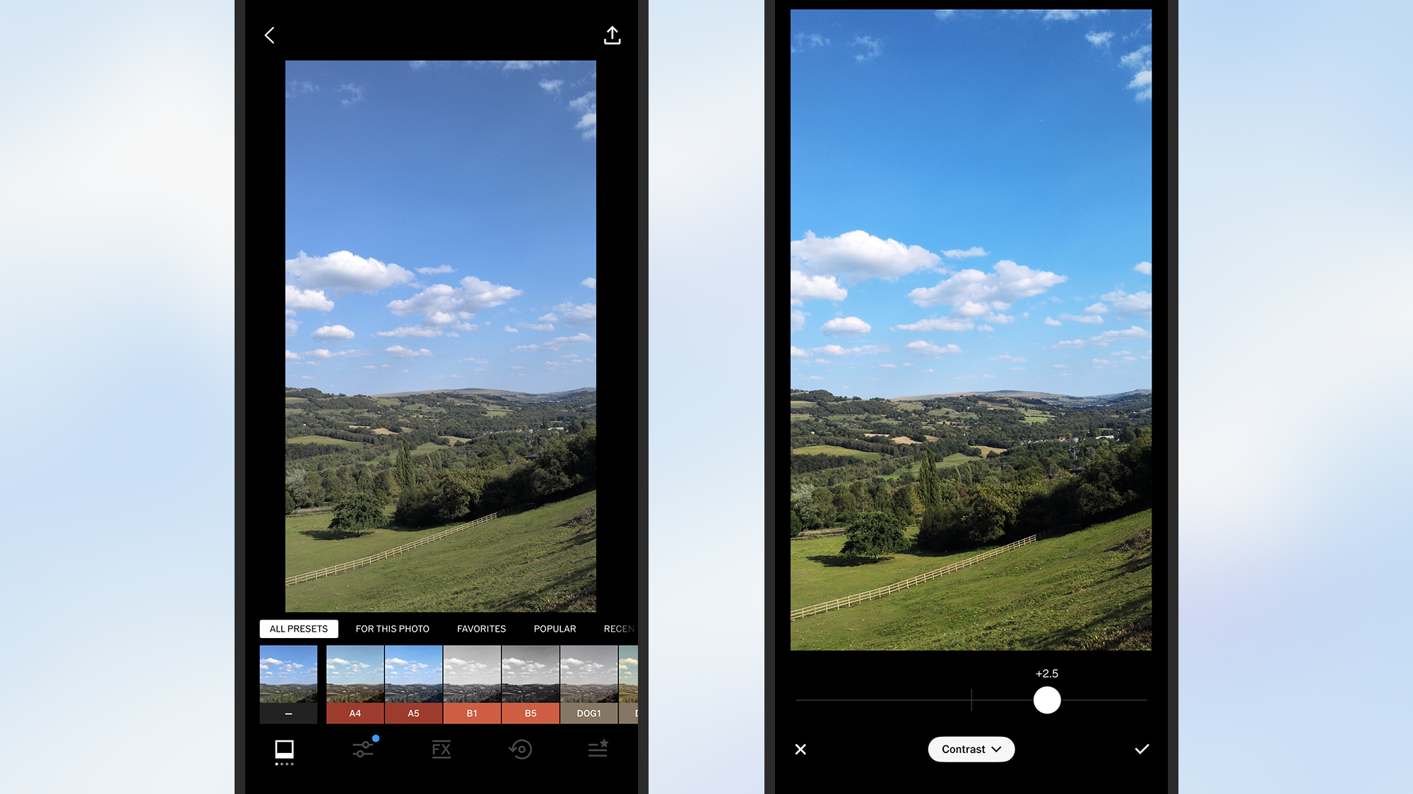 VSCO 附带了一些专业级的编辑工具。截图:VSCO