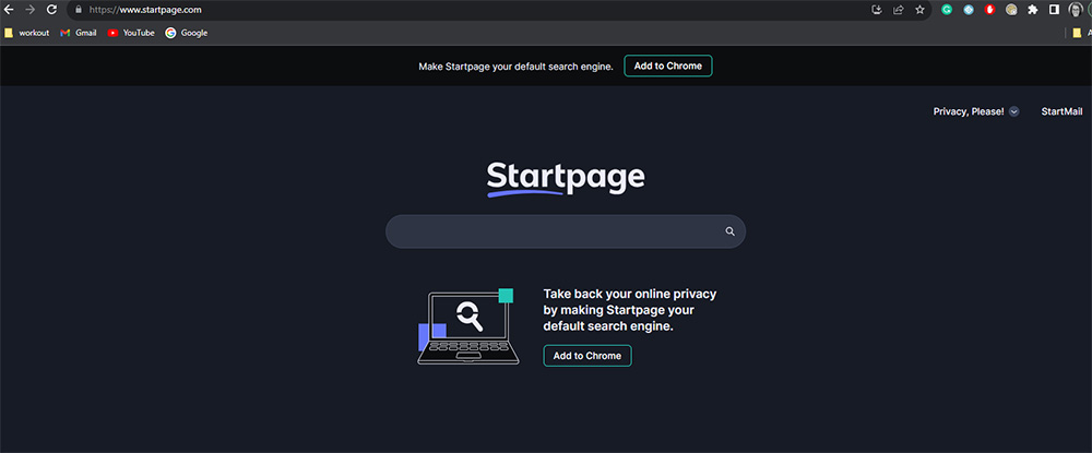 该引擎还提供匿名视图,使您可以访问页面而无需共享任何有关您自己的信息。该过程的工作原理是在发送查询之前删除您的 IP 地址。 Startpage 还提供 StartMail(一个安全电子邮件平台)选项。
