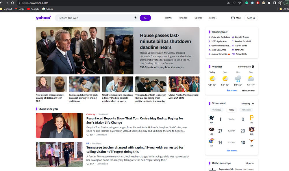 雅虎自 1994 年以来一直使用 Bing 的搜索引擎来创建结果,因此预计会有类似的分组,但它对某些搜索(包括趋势搜索)使用自己的技术。虽然雅虎的搜索页面不像必应或谷歌那么优雅,但它提供了天气、新闻、体育和趋势等类别,以及雅虎电子邮件服务的访问权限。雅虎财经是另一个吸引人的地方,它可以让您快速了解股市的最新动态。