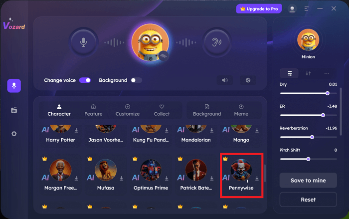 在这里,我们将以 Vozard 为例,向您展示将声音更改为 Pennywise 的分步指南。