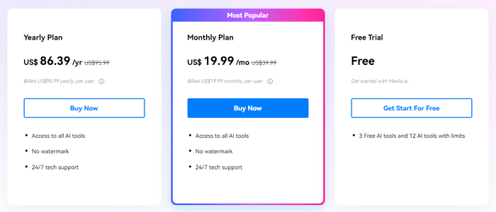 如果您计划获得 Medio.io 的高级版本,以下是适合您的定价计划。