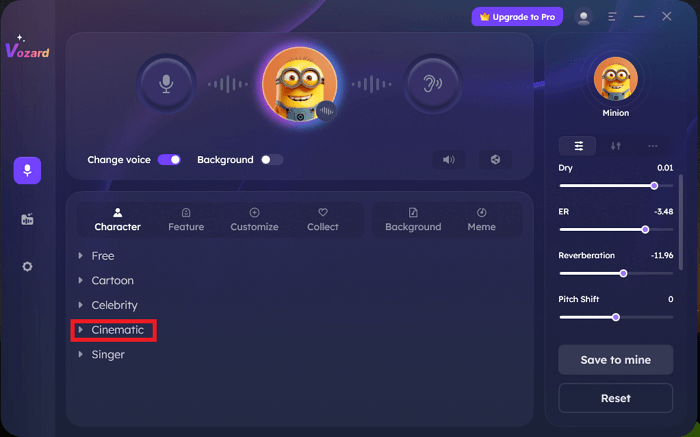 凭借超过 170 种音效,您可以成为任何人,甚至是 Vozard 的 Pennywise。它非常适合在游戏、直播或内容创建过程中享受乐趣。 Vozard 是变声的一个新兴选择。 Vozard 采用 AI 技术,以其惊人的品质而广受好评,可以将您的声音更改为任何标志性角色,例如《小黄人》中的格鲁、蝙蝠侠、泰勒·斯威夫特等。让它脱颖而出的原因在于其友好而强大的设计。共有三种变声模式可供选择,实时最适合在线游戏,直播变声、录音和文件最适合内容创作。无论您想用变声器做什么,Vozard 都可以满足您的需求。