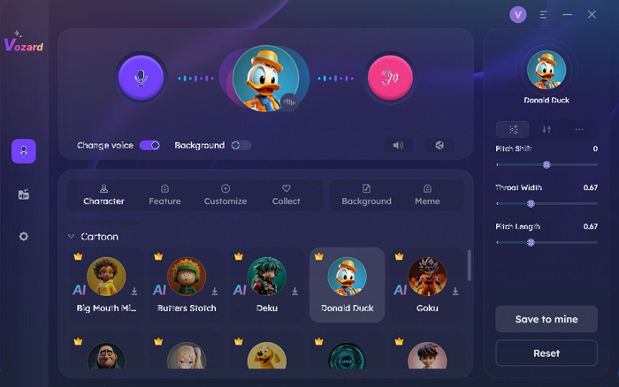 免费下载 Vozard 变声软件,将您的声音更改为任何您想要的声音,以增强在线聊天、游戏、直播和内容创建体验。