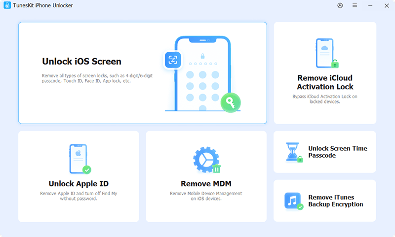 TunesKit iPhone 解锁器,屏幕密码解锁器,可用于删除某些类型的屏幕密码,例如 4 位和 6 位密码。它还能够删除 iPhone、iPad 和 iPod touch 上的屏幕时间密码并绕过 MDM 屏幕。如果您想在没有密码的情况下从iPhone中删除Apple ID,您可以使用此工具。 TunesKit iPhone Unlocker 适用于 Mac 和 Windows 计算机。