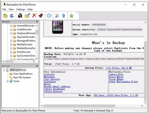 iBackupBot for iTunes 的主要特点: