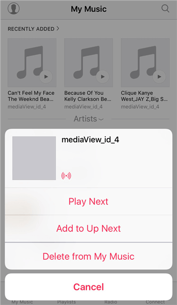 1 删除特定歌曲:打开 iPhone 或 iPad 上的音乐应用程序 > 点击“歌曲”按钮 > 滚动要删除的歌曲 > 向右滑动 > 单击“删除”以删除所选歌曲。