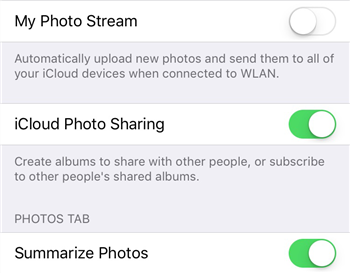 也许您还不知道,当连接到 Wi-Fi 时,iPhone 或 iPad 上的照片流可以自动将您最近的 1,000 张照片同步到所有 iCloud 设备,这意味着这些照片将占用您设备上至少 1GB 的空间。因此,除非您需要将 iPhone 或 iPad 中的照片共享到其他设备,否则您可以将其关闭以节省空间。